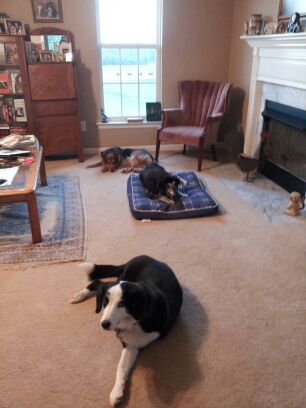 Annie is the top “target” dog right now and continues to make huge strides. She is now up in the house and has met a few of my dogs. She is learning how to do stairs. This dog has a lot of heart. She now trusts me, and really tries to please me even when she is unsure about new environments. So although she had obviously never done stairs, she tried really hard to follow me up them. She still prefers me to “lead” when on walks, but follows happily. She still gives kisses and greets me with tail wags, is eating well and I’ll be giving her more and more exposure to household things this coming week. I will also be starting to teach her all about “lure training” this week, so we should be able to start bribing her with cookies to do things within another week or two. I’ll start taking some pictures of her on our walks for updates.